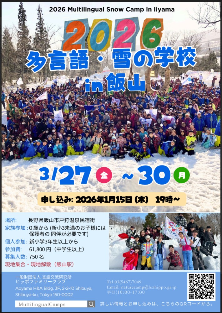 2024年、第11回多言語・雪の学校の申込日が近づいて参りました。会員の皆様のお申込は、2024年1月10日(…