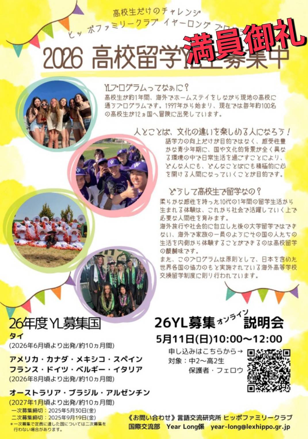 説明会では、帰国生の体験談をはじめ、高校留学やその準備についてお伝えします。
